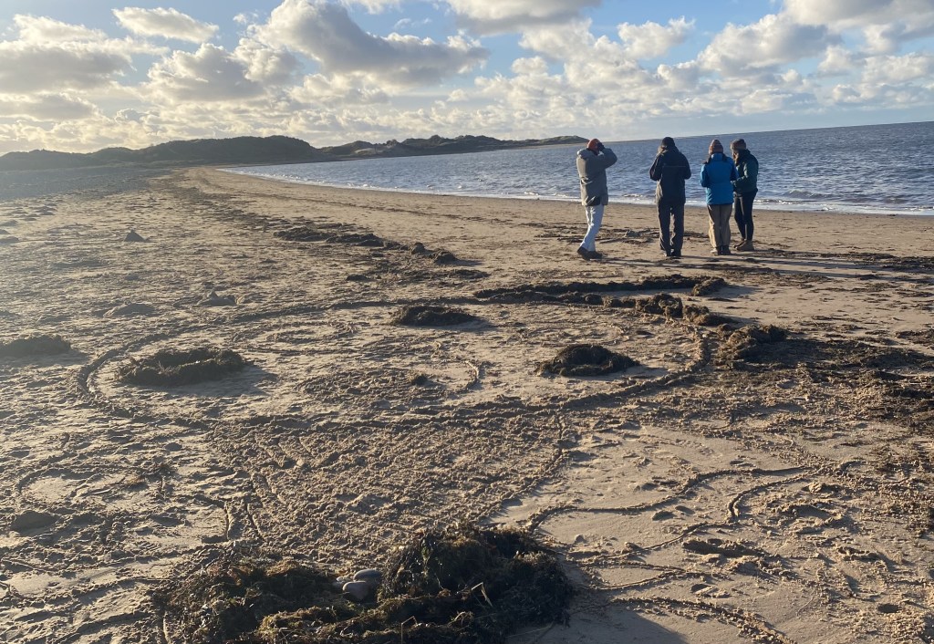 As part of the residency, I invited a group of volunteers to discuss humans, plants, animals and natural forces relationship to our coastlines. Asking what owns the beach? What’s responsible for it? And why is it important? This resulted in the creation of a crop circle on Roanhead beach.