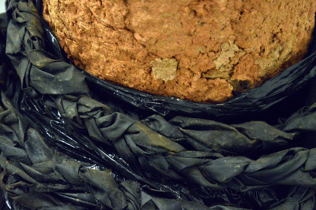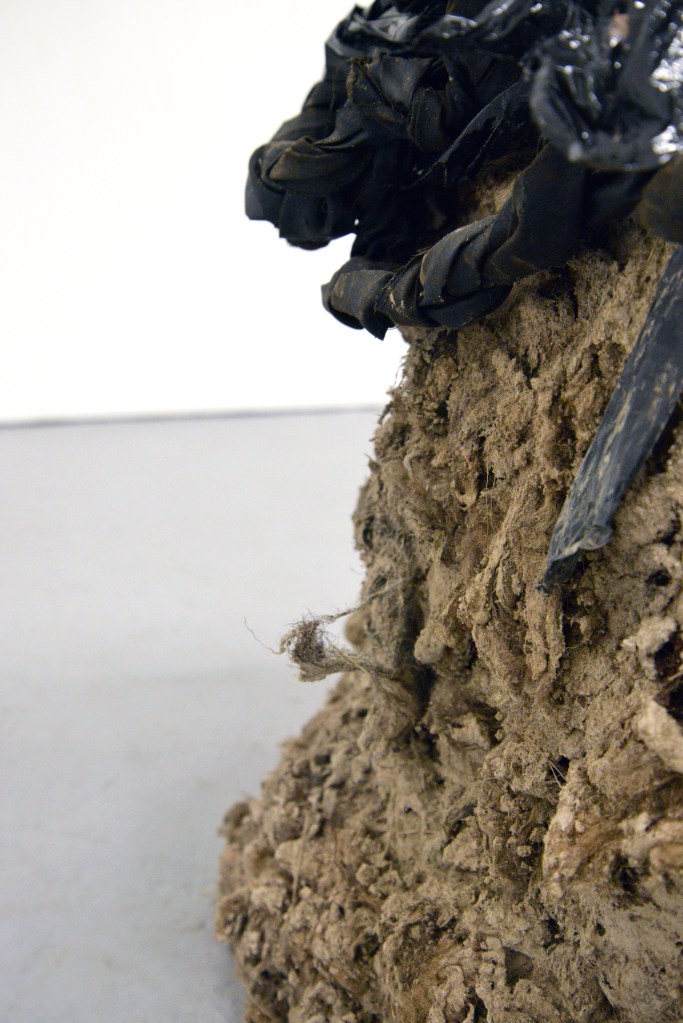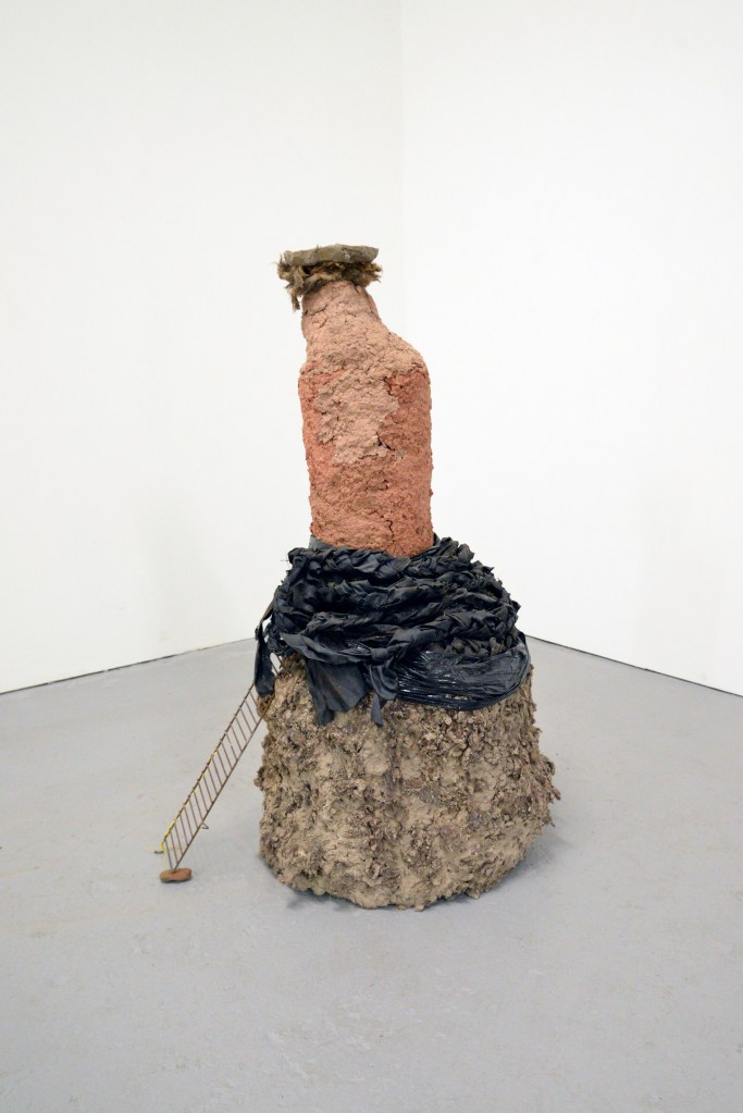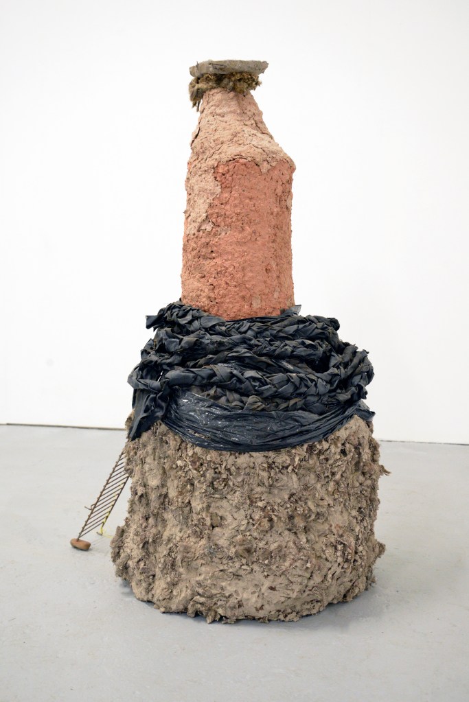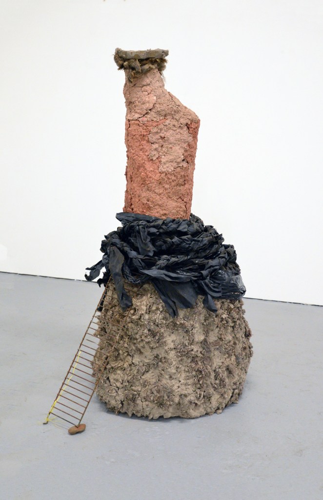 The Arecibo message no.1 The Arecibo message no.1, 2024. Pine wood, foam, chicken wire, iron pigment, stone, found metal, wool, clay, barn tye, bitumen, calico, sand and beeswax.