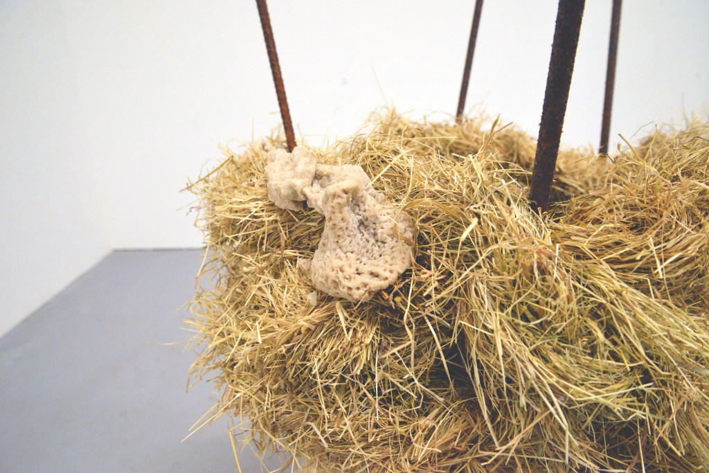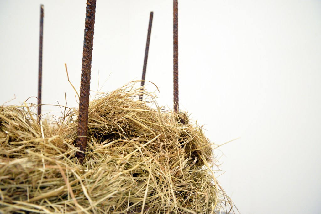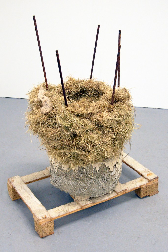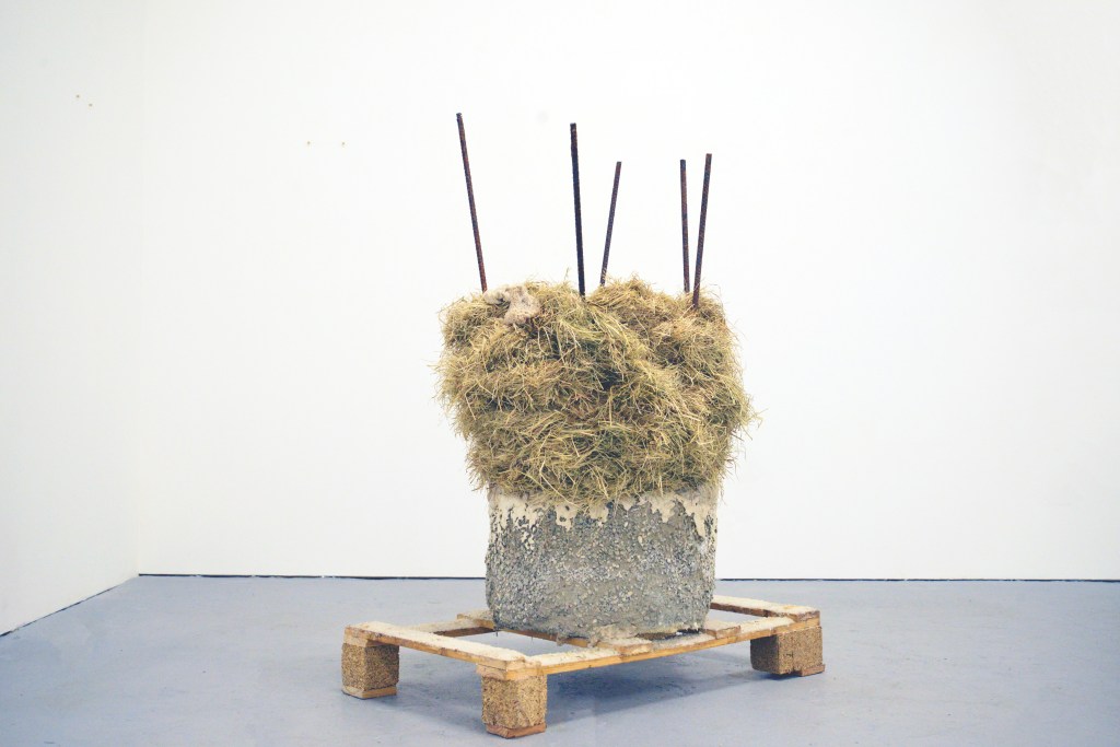 The Arecibo message no.2 The Arecibo message no.2, 2024. Post create, salt dough, salt, wooden pallet, straw, re-rod, pebble dash, sticks, pine wood and foam.